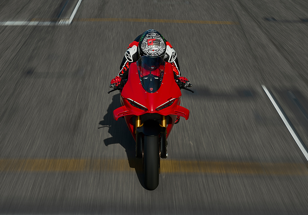 Όσον αφορά στην αεροδυναμική, η νέα Panigale V4 εστιάζει στο να προστατεύσει τον αναβάτη από αναταράξεις κατά μήκος της ευθείας, σχεδόν σαν να βρισκόταν μέσα σε μια «φυσαλίδα ήρεμου αέρα», την ίδια αίσθηση που βιώνουν οι αναβάτες της Desmosedici GP.